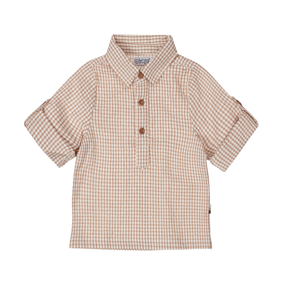 Geruit jongens bloesje , Camel zand.